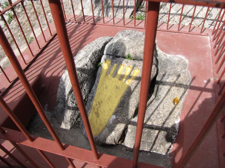 Дальше поехали на Мандалайский холм, который возвышается над городом. Там расположен очень важный храм, потому что отпечаток стопы Будды хранится только в нем. Говорят, храму две тысячи лет. Сколько же раз его реставрировали? Легенда гласит, что Будда взошел на холм со своим учеником Анандой. Но с датами тут явная путаница. Будда жил три с половиной тысячи лет тому назад. Может быть, тогда, очень– очень давно, тут и было какое-то строение? Кто это знает? Вообще, с отпечатками Будды, его зубами и волосами какая-то неразбериха. Они есть в очень многих храмах азиатских стран: Индии, Шри Ланки, Таиланда, Китая, Лаоса, Камбоджи, Индонезии, Малайзии. Возможно, это не весь перечень? Судя по всему, в каждой религии достаточно неточностей. Тщательнее нужно было древним людям работать над святынями.