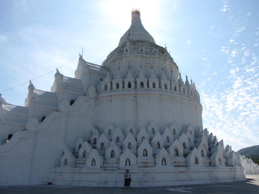 Катя с Винаем позавтракали в 7 утра, чтобы пораньше двинуться в путь: впереди их ждал Сагаин. Через полчаса машина остановилась в очень странном месте: налево от дороги (как будто гора без вершины) что-то огромное, а направо, у реки, какая-то странная разрушеная громадина, явно дело рук человеческих. Подошли поближе и увидели, что гора – это недостроенный Ват, внутри которого крошечное помещение, где монах записывает все просьбы прихожан. Скорее всего, просьбы к Будде. Интересно, как он их передает, и как получает ответ? Оказалась, эта знаменитая пагода Мингун. Знаменитая потому, что задумывалась в конце 18 века самым высоким строением в мире, 150 метров в высоту (пирамида Хеопса 146м). Ее не достроили, поскольку прошел слух, что по окончанию строительства, начнется народный бунт. Землетрясения постепенно делали свое дело. А огромная глыба, напоминающая отдаленно попу льва, оказывается была выходом к реке для Короля, который шел из пагоды к подземному переходу. Ни входа, ни выхода, правда, никто не нашел.