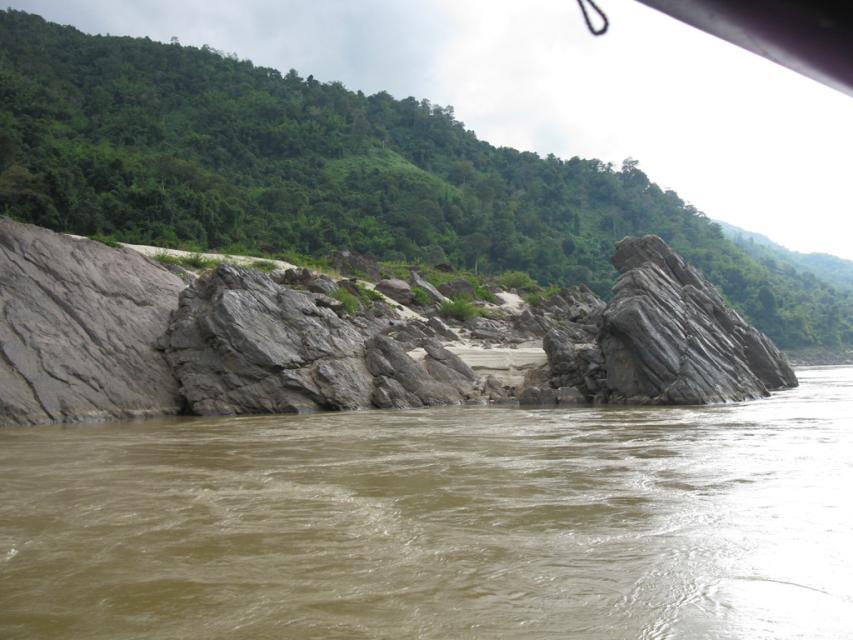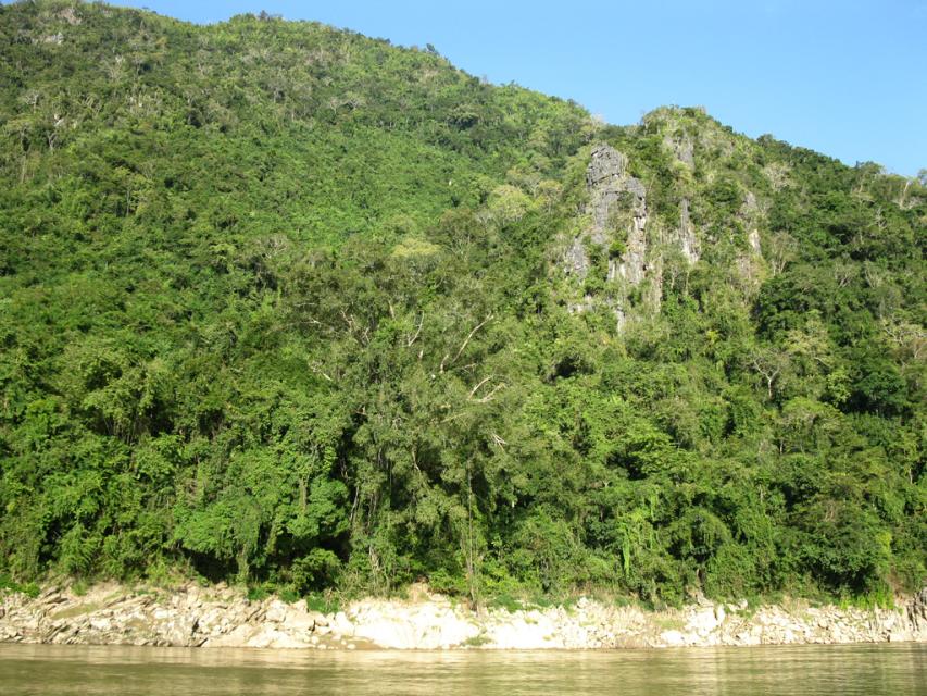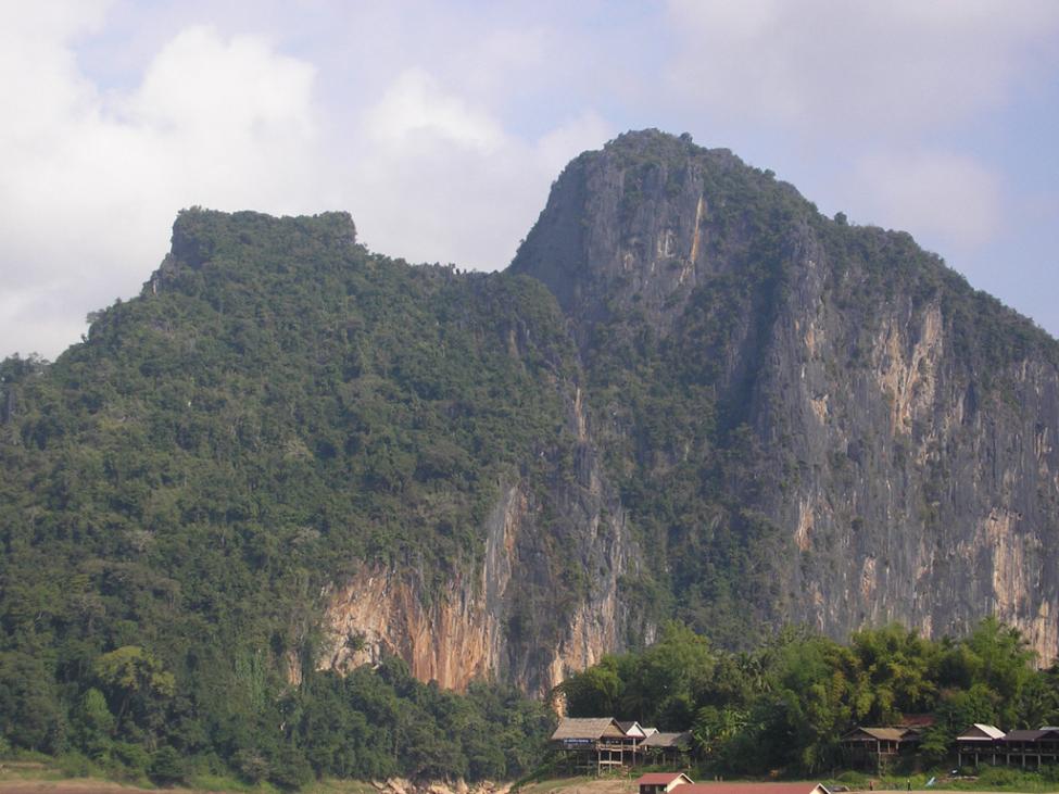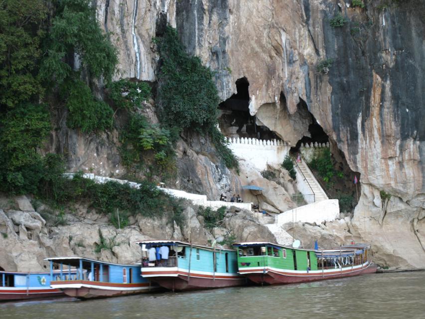 В этой скале на берегу Меконга находится