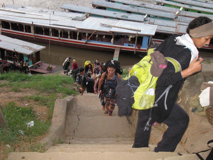 Сначала обещали, что прибудут в город в 2 часа дня, потом в 5, потом в 7. И наконец, в 8 вечера лодка причалила к берегу. Все то же. Крутой подьем, в руках и на плечах багаж, а наверху люди, предлагающие жилье.