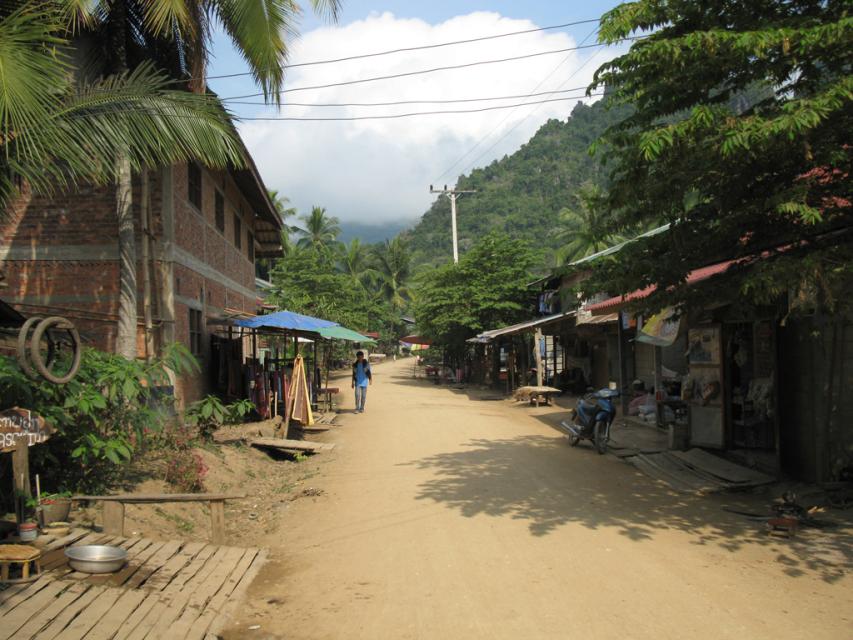 Дорога через деревню, ведущая к пещерам Пак У.