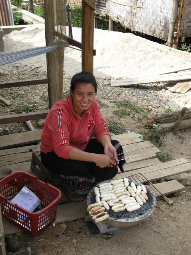 Путь лежал через нищие деревни, где люди на дороге продают всякую ерунду. Если стоят, значит, кто-то покупает. Въехали в большую, более благоустроенную деревню: ее благополучие зависит от количества желающих увидеть пещеру Будды. Вдоль улицы что-то жарили и продавали.