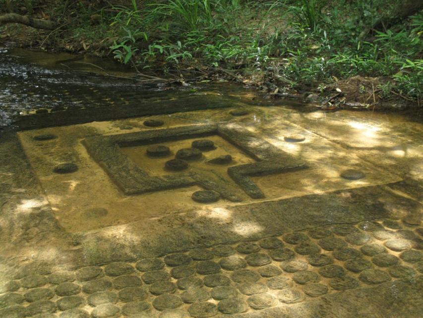 Лингамы вырезаны на дне речки для того, чтобы протекающая над ними вода насыщалась положительными вибрациями и несла на рисовые поля заряд плодородия.