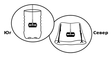 Для проведения более точных замеров из куска коры или мягкого дерева можно попытаться изготовить самодельный «жидкостный» компас. Для этого, как описывалось ранее, вырезать емкость – углубление в форме правильного круга, в центре которого воткнуть ось. По окружности «стакана» компаса вырезать градусную шкалу или наклеить шкалу, нарисованную на бумаге, картоне, ткани. Для удобства исполнения шкалу лучше разбить на более крупные румбы. В «стакан» компаса залить воду, на поверхность которой, слегка наколов на ось, опустить кусочек коры, пробки, пенопласта с воткнутой в него магнитной иголкой.