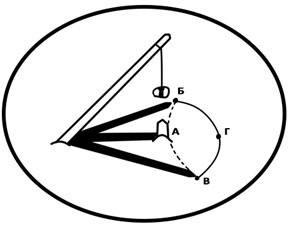 После полудня конец тени от палки вновь неизбежно коснется линии полукруга (точка В). Полученную дугу БВ надо разделить пополам, чтобы получить точку Г. Линия АГ будет являться полуденной тенью и указывать на север.
