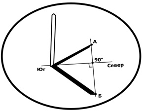Если в местный полдень встать спиной к солнцу, то тень укажет на север, соответственно юг будет сзади, восток – по правую руку, а запад – по левую. Иначе говоря, самая короткая тень от предмета указывает на север, и, одновременно, самая короткая тень «отбивает» полдень.