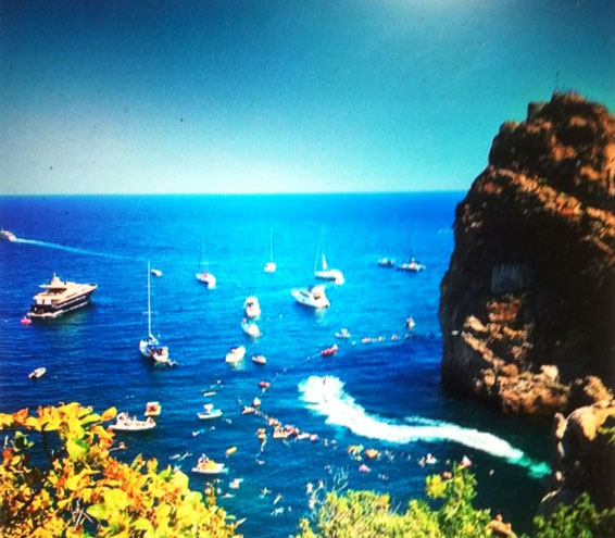 На снимке – на переднем плане – узкая полоска каменистого дикого пляжа, на который мы спускались сверху, по крутым вырубленным в горе ступеням.