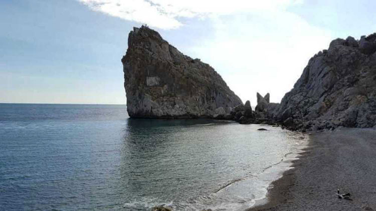 На этой фотографии – гора Кошка и скала Дива, с которой парни, занимающиеся экстримом, прыгали в море.