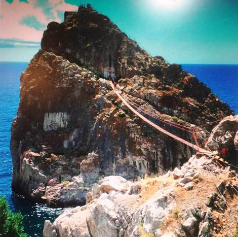Скала Монах, обрушенная в море сильным штормом в 1931 году, своим 48-и метровым каменным монолитом издали напоминала очертания человека в длинном плаще и монашеском капюшоне.