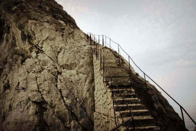 К сожалению, скала Монах до нашего времени не сбереглась. Она развалилась на груду валунов, занимающих пространство на полпути между Джива-Кая и Кош-Кая. По этим камням протоптана дорога от берега к началу лестницы, ведущей на вершину Дивы. В прошлом здесь был дозорный пункт, откуда часовые обозревали окрестность, чтобы вовремя заметить приближение чужаков.