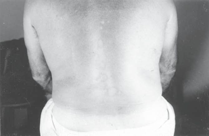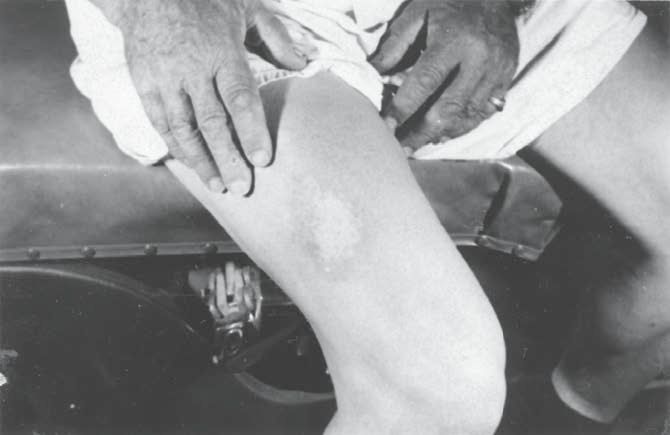 За 15 лет мистер Калмоне перепробовал практически все возможное и без результатов. Это была типичная форма псориаза с кровотечениями, зудом, шелушением и т. п. 21 июля 1975 года мы начали лечение при полной поддержке его жены Минни. Получив конкретные инструкции, он покинул мой кабинет, чтобы вернуться через неделю. Он вернулся в назначенное время, разделся в кабинете для осмотра. Увидев его кожу, я был поражен результатами; ее состояние улучшилось в разы. Очевидно, лечение работало. Большая область высыпаний на правом бедре и несколько точек в области поясницы теперь были светло-розового цвета, без шелушения. Они уже совсем не походили на кровоточащие, ороговевшие участки кожи, которые я видел неделю назад. Прошло около трех месяцев, и 16 октября 1975 года я убедился, что мистер Калмоне окончательно избавился от псориаза. Все покраснения исчезли так, будто кто-то стер их ластиком. Он согласился выставить историю своей болезни в библиотеке Фонда Эдгара Кейси, в надежде, что страдающие псориазом смогут ознакомиться и рассмотреть вариант моего лечения, который я разработал на основе информации, представленной в материалах Кейси. История его болезни вместе с фотографиями выставлены под стеклом в специальном отделе библиотеки (наряду с фотографиями нескольких других моих пациентов), и рядом приложены его «показания»: