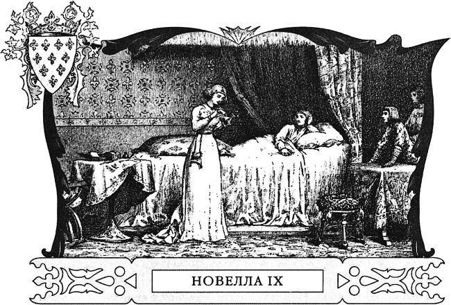 Случилось, что в то время, когда она более чем когда-либо пылала любовью к Бельтрамо, ибо слышала, что он стал красивейшим юношей, до нее дошла весть, что у французского короля от нарыва на груди, дурно излеченного, осталась фистула, доставлявшая ему большое беспокойство и большую боль, и не нашлось еще врача, хотя многие пытались, который сумел бы излечить его от этого, а все лишь ухудшали зло; почему король, отчаявшись, не хотел более принимать никакого совета, ни помощи. Девушка была чрезвычайно обрадована этим и размыслила, что это не только даст ей законный повод отправиться в Париж, но что, если болезнь такова, как она себе представляла, легко может статься, что она получит Бельтрамо в мужья. Потому, многому научившись от отца, она приготовила порошок из некоторых трав, полезных от болезни, которую она предполагала, села на лошадь и отправилась в Париж. И здесь ничего не предприняла, не постаравшись наперед увидать Бельтрамо; затем, явившись к королю, попросила у него, как милости, показать ей свой недуг. Король, видя перед собой красивую и приятную девушку, не сумел ей отказать и показал ей его. Когда она его увидела, тотчас же уверилась, что она может его излечить, и сказала: «Государь, если вам угодно, я надеюсь с Божьей помощью без всякого вашего беспокойства и тягости в неделю освободить вас от этого недуга». Король внутренне поглумился над ее словами, говоря: «Чего величайшие врачи на свете не могли и не уразумели, как то может уразуметь молодая женщина?» Поблагодарив ее за доброе желание, он ответил, что решился не следовать более совету врача. На это девушка сказала: «Государь, вы гнушаетесь моим искусством, потому что я девушка и женщина, но я напомню вам, что я врач не своим знанием, а помощью Бога и наукой магистра Герардо из Нарбонны, который был моим отцом и знаменитым врачом, пока был в живых». Тогда король сказал себе: «Может быть, она послана мне Богом, почему не испытать мне, что она умеет делать, так как она обещает излечить меня, не учинив беспокойства и в короткий срок?» Решившись испытать это, он сказал: «А если вы не излечите меня, заставив нас нарушить наше решение, что хотите, чтобы за то воспоследовало?» – «Государь, – ответила девушка, – велите стеречь меня, и если я не вылечу вас через неделю, велите сжечь; а если я вас вылечу, какая будет мне за то награда?» На это король отвечал: «Вы, кажется нам, еще не замужем, если вы это сделаете, мы выдадим вас за хорошего, высокопоставленного человека». Девушка сказала ему: «По правде, я охотно согласна, чтобы вы выдали меня замуж, но я желаю иметь мужем, кого попрошу, не прося у вас никого из ваших сыновей, ни кого-либо из королевского дома». Король тотчас же обещал устроить это.