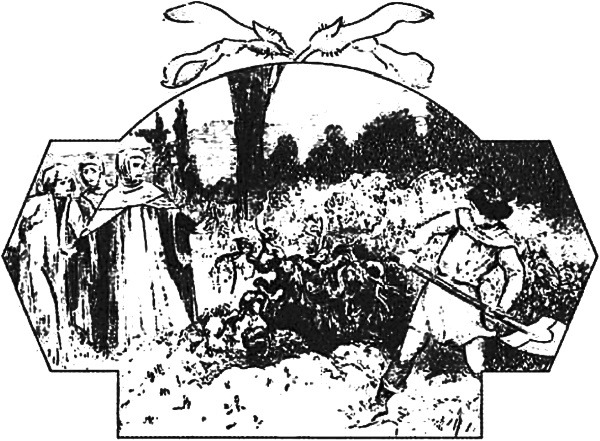 Когда Россильоне принял это решение, случилось, что оповестили о большом турнире во Франции, о чем Россильоне тотчас же дал знать Гвардастаньо, послав ему сказать, чтобы он, коли ему угодно, приехал к нему, и они вместе решат, отправиться ли им туда и каким образом. Гвардастаньо, очень обрадованный, ответил, что он непременно явится к нему на следующий день к ужину. Услышав это, Россильоне подумал, что пришло время, когда ему можно будет убить его; на другой день, вооружившись, он сел на коня и в сопровождении нескольких своих слуг в какой-нибудь миле от своего замка сел в засаду, где должен был проезжать Гвардастаньо; прождав его порядком, он усмотрел его безоружного с двумя невооруженными слугами позади, ибо тот нисколько его не остерегался. Когда Россильоне увидел, что тот доехал до желаемого ему места, вышел против него коварно и яростно, с криком: «Смерть тебе, предатель!..» Так сказать и пронзить ему грудь копьем было делом одного мгновения. Гвардастаньо, не будучи в состоянии ни защищаться, ни сказать слова, упал, проткнутый копьем, и вскоре затем умер. Его слуги, не узнав, кто это сделал, повернули своих коней и как могли скорее поспешили к замку своего господина. Сойдя с коня, Россильоне ножом вскрыл грудь Гвардастаньо, собственными руками извлек из нее сердце и, велев завернуть его в значок копья, отдал его нести одному из своих слуг; приказав, чтобы никто не осмелился проронить о том ни слова, он снова сел на коня и вернулся в свой замок, когда уже наступила ночь.