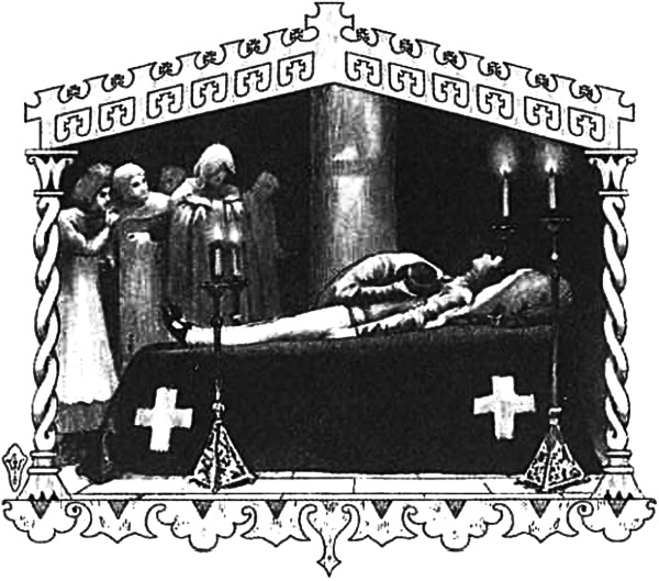 Когда настал день и его увидели мертвым у входа его дома, подняли большой крик, особенно его мать, обыскали его повсюду и осмотрели и, не найдя на нем ни раны, ни следов удара, врачи согласно заключили, что он умер с тоски, как то и было. Так его тело и понесли в церковь, куда пришла и опечаленная мать его, а с нею много других родственниц и соседок, и начали они над ним, по нашему обычаю, рыдать и сетовать.