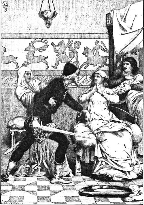 Когда спустя несколько дней начальник приговорил его высечь, водя по городу, и потом повесить, для того, чтобы в один и тот же час исчезли с лица земли оба любовника и их сын, мессер Америго, у которого гнев не прошел даже после того, как он довел Пьетро до смерти, положил яду в чашу с вином и, отдав ее одному из своих прислужников вместе с ножом наголо, сказал: «Пойди с этими двумя вещами к Виоланте и передай ей от меня, чтобы она скорее выбрала какую угодно из двух смертей – или от яда, или от ножа; коли нет, я в присутствии сколько ни на есть граждан велю ее сжечь, как она того и заслужила; сделав это, возьми сына, рожденного ею несколько дней тому назад, и, раздробив ему голову об стену, брось на съедение собакам». Когда суровый отец произнес этот жестокий приговор дочери и внуку, прислужник ушел, более настроенный к худу, чем к добру.
