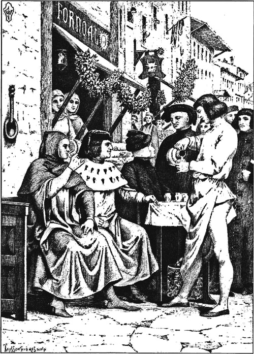 Так сказав, он сам выполоскал четыре хороших новых стакана, велел принести небольшой кувшинчик своего доброго вина и стал прилежно наливать мессеру Джери с товарищами. Вино показалось им таким, что лучше его они давно не пивали, потому они очень расхвалили его, и пока оставались там посланники, почти каждый день мессер Джери ходил с ними пить.