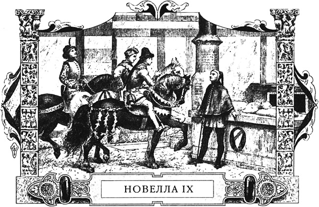 Так как епископ и маршал часто бывали вместе, случилось в Иванов день, что, когда они ехали рядом верхом и увидели дам на улице, где совершается бег взапуски, епископ заметил одну молодую даму, которую унесла нынешняя чума, по имени монну Нонну деи Пульчи, двоюродную сестру мессера Алессио Ринуччи, которую все вы, должно быть, знали; ее-то, тогда свежую и молодую, находчивую и решительную, незадолго перед тем вышедшую замуж в Порта Сан Пьеро, он и показал маршалу; затем, когда был близко от нее, положил ему руки на плечо и сказал: «Нонна, как тебе это покажется? Уверена ли ты в том, что с ним совладаешь?» Нонне показалось, что эти слова несколько задели ее честь и должны были запятнать ее во мнении тех, кто их слышал, а их было много; потому, не затем чтобы смыть это пятно, а чтобы воздать ударом на удар, она тут же ответила: «Мессере, может быть, он и не одолел бы меня, но я желала бы во всяком случае, чтобы деньги были настоящие».