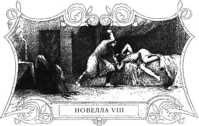 Когда они переговорили об этом, Аникино, оставив даму, пошел по кое-каким своим делам, ожидая с величайшей в свете радостью, чтобы наступила ночь. Эгано, вернувшийся с охоты, поужинав и чувствуя усталость, пошел спать; а жена за ним, оставив, по обещанию, дверь комнаты открытой. В указанный ему час Аникино подошел к ней и, тихо войдя в комнату, запер изнутри дверь, направился в сторону, где спала дама, и, положив ей руку на грудь, увидел, что она не спит. Когда она услышала, что Аникино пришел, схватила в обе руки его руку и, крепко держа ее, так стала ворочаться на постели, что разбудила Эгано и сказала ему: «Вчера вечером я ничего не хотела говорить тебе, ибо мне казалось, ты устал; а теперь скажи мне – да поможет тебе Господь, Эгано! – кого ты считаешь самым лучшим и честным и кого наиболее любишь из всех слуг, какие у тебя в доме?» Эгано ответил: «К чему это ты меня спрашиваешь о том, жена? Разве не знаешь? У меня нет и никогда не было такого, кому бы я так доверялся и верю и кого так люблю, как доверяю и люблю Аникино; но зачем ты меня о том спрашиваешь?»