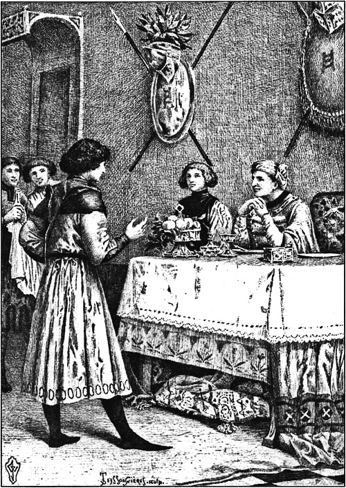 Маркиза Монферратская обедом, приготовленным из кур, и несколькими милыми словами подавляет безумную к ней страсть французского короля.