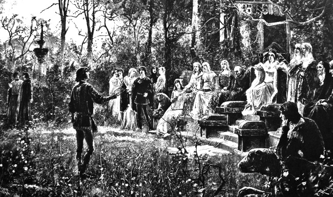 Оставалось создать общество «Декамерона». В обществе семь дам, от 18-летнего возраста, и трое мужчин, из которых самому юному не меньше 25-ти лет. Имена первых – вымышленные: Боккаччо не хочет называть их настоящими, потому что характер некоторых рассказов, объясняемый обстоятельствами, мог бы дать повод к нареканию. Очень вероятно, что какие-нибудь флорентийские красавицы дали ему черты для изображения некоторых собеседниц; так в «Ameto»[118] и «Amorosa Visione» флорентийские дамы являлись под покровом аллюзий и аллегорий. Прием не новый, и мы не прочь поверить Боккаччо, когда дело идет о Филомене и Лауретге, Неифиле и Элизе; но Фьямметта и Пампинея принадлежат неаполитанским воспоминаниям, Эмилия – фантасмагории «Амето», «Тезеиде»[119] и, может быть, также сердечной биографии поэта, – а между тем оказывается, что все участницы бесед связаны друг с другом дружбой и соседством, либо родством. Боккаччо, очевидно, отводит нам глаза, как и уверением, что назовет своих рассказчиц «именами, отвечающими всецело или отчасти их качествам». Что бы означала Лауретта? Пампинея, может быть, не что иное, как параллель к Памфило: южноитальянское Pampino. Относительно мужчин нет замечания, что и здесь мы имеем дело с кличками: имена Памфило, Филострато, Дионео слишком хорошо известны; это прозвища самого Боккаччо, показатели его разновременных настроений. Это их отличие удержано и в «Декамероне», по крайней мере, во второй его части, и мы не можем дать особого, реального значения тому заявлению, что некоторые из юношей оказываются в родстве с тою или другою из рассказчиц, либо пылают к одной из них.