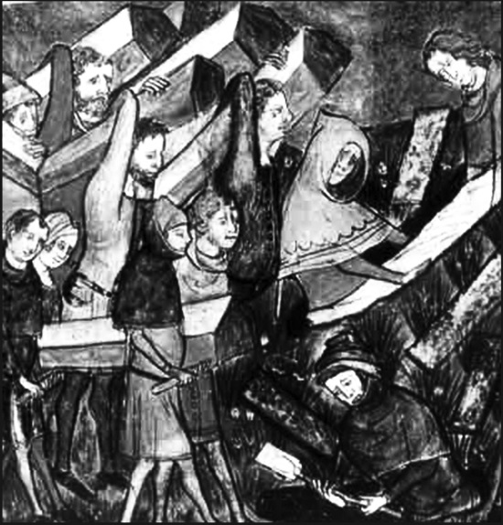 Первым делом следует рассказать об истреблении человеческого рода и объяснить, как, когда, каким образом оно происходило и каких размеров достигло. Задача описания той казни, которую божественное правосудие еще с присущим ему милосердием ниспослало людям, за свою испорченность заслуживающим страшного суда, парализует умственные силы. Но представляя себе спасительную пользу, которую память об этом событии принесет будущим поколениям, мы начинаем свои записи с большей уверенностью в душе. В 1346 году от благотворного воплощения Христова на небе можно было видеть, что в созвездии Водолея сошлись три планеты, среди которых, по словам астрологов, господствовал Сатурн. В связи с этим предрекали наступление великих и важных перемен, но так как подобное сочетание уже неоднократно наблюдалось в прошлом, вероятно, причины несчастья следует искать не в каких-то особенностях их влияния на этот раз, а в божьем суде, выражающем непререкаемую Господню волю. В этом году в восточных странах, в верхней Индии, Каттае и других прибрежных провинциях Океана, началась чума среди людей всякого пола и возраста. Первым ее признаком было кровохарканье, а смерть наступала у кого сразу, у кого на второй, на третий день, некоторые же протягивали и дольше. Тот, кто ухаживал за этими несчастными, немедленно заражался и заболевал сам и в непродолжительном времени погибал. При этом у большинства возникало вздутие в паху, а у многих подмышками правой и левой руки или на других частях тела, и почти всегда на теле больного появлялась какая-то опухоль. Эта чума приходила с перерывами и вспыхивала у разных народов, за год она охватила третью часть света, называемую Азией. В конце концов она добралась до народов, живущих у Великого моря[148], на берегах Тирренского моря, в Сирии и Турции, близ Египта и на побережье Красного моря, на севере в России[149], в Греции, в Армении и других странах. Тогда итальянские галеры покинули Великое море, Сирию и Ромею, чтобы не заразиться и вернуться со своими товарами домой, но многим из них было суждено погибнуть в море от этой болезни. Приплыв в Сицилию, они вступили в переговоры с местными жителями и оставили им больных, вследствие чего чума распространилась и среди сицилийцев. Когда галеры пришли в Пизу, а затем в Геную, тамошние жители тоже стали умирать от заразы, но не в таком большом количестве. Наконец наступил отмеренный Богом час и всю Сицилию охватило моровое поветрие. Оно рассеялось на побережье и в восточных областях Африки, на берегах нашего Тирренского моря. Продвигаясь постепенно к западу, оно затронуло Сардинию, Корсику и другие острова этого моря. С другой стороны, называемой Европой, зараза также продвигалась от страны к стране все дальше на запад, расширяя свои владения и в южном направлении, где она принимала более острые формы, чем на севере. В 1348 году чума господствовала во всей Италии, за исключением Милана и предгорий Альп, разделяющих Германию и Италию, где она причинила меньше вреда. В том же году она перебросилась через горы и распространилась в Провансе, Савойе, Дофине, Бургундии, на побережье у Марселя и Эгмора, в Каталонии, на острове Майорка, в Испании и Гранаде. В 1339[150] году она дошла на западе до берегов Океана, Европы, Африки и Ирландии, до островной Англии и Шотландии, других западных островов и внутренних зем