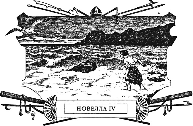 На следующий день, когда ветер переменился, грузовые корабли пошли под парусами на запад; весь тот день шли благополучно, но к вечеру поднялся бурный ветер, который, вздымая высокие волны, разъединил один корабль от другого. Случилось, что корабль, на котором находился несчастный бедняк Ландольфо, силою того ветра хватившись об отмель повыше Кефалонии, дал трещину и разбился вдребезги, точно кусок стекла, брошенный об стену; море покрылось плававшим товаром, ящиками и досками, как обыкновенно бывает в таких случаях; и хотя ночь была темнейшая, а море волновалось и вздулось, несчастные и жалкие люди, кто умел плавать, бросились вплавь и стали цепляться за то, что случайно им попадалось. Между ними был и бедный Ландольфо; за день перед тем он несколько раз взывал к смерти, предпочитая обрести ее, чем вернуться домой нищим, каким себя видел; увидев смерть вблизи, он ужаснулся ее и, подобно другим, схватился за подвернувшуюся ему под руки доску: быть может, он не сразу утонет, а Господь пошлет какую-нибудь помощь в его спасение. Оседлав доску, чувствуя, что море и ветер носят его туда и сюда, он продержался, как мог, до бела дня; когда настал день и он осмотрелся вокруг, ничего иного не увидел, кроме облаков и моря и ящика, который, носясь по морским волнам, иногда к нему приближался, к его великому ужасу, ибо он боялся, как бы ящик не ударился о него и не потопил; всякий раз, когда он подплывал близко, он отдалял его, насколько мог, рукою, как ни мало было у него сил. Как бы то ни было, случилось, что ветер, внезапно разнуздавшись в воздухе и обрушившись на море, так сильно ударил в ящик, а ящик о доску, на которой был Ландольфо, что она перевернулась, Ландольфо, выпустив ее, поневоле ушел под воду и, вынырнув, скорее помощью страха, чем силы, увидел, что доска от него очень далеко; боясь, что ему до нее не достать, он подплыл к ящику, который был вблизи, и, опершись грудью об его крышку, по возможности старался поддержать его руками в прямом положении. Таким-то образом, бросаемый морем туда и сюда, без пищи, ибо есть было нечего, напиваясь более, чем было желательно, не зная, где он, и ничего не видя, кроме моря, он провел весь тот день и следующую ночь. На другой день, по милости ли Божьей, или по воле ветра, он, обратившийся почти в губку и крепко державшийся обеими руками за края ящика, как то, мы видим, делают утопающие, хватаясь за любой предмет, пристал у берега острова Корфу, где случайно бедная женщина мыла и чистила песком и морскою водою свою посуду. Заметив его приближение, не разглядев его образа, она в страхе и с криком попятилась назад. Он не в состоянии был говорить, зрение ослабело, почему он ничего и не сказал ей; но когда море понесло его к берегу, она распознала форму ящика, а приглядевшись и всмотревшись пристальнее, признала прежде всего руки, распростертые на ящике, затем лицо и сообразила, что это такое. Поэтому, движимая состраданием, выйдя несколько в море, уже улегшееся, и схватив Ландольфо за волосы, она вытянула его вместе с ящиком на берег; с трудом оттянув его руки от ящика, она взвалила последний на голову бывшей с нею дочки, а Ландольфо, точно малого ребенка, потащила в местечко, посадила в ванну и так его терла и мыла горячей водой, что к нему вернулось утраченное тепло, а отчасти и потерянные силы. Когда ей показалось, что настала пора, она вынул