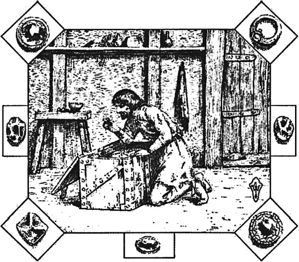 Ландольфо Руффоло[50], обеднев, становится корсаром; взят генуэзцами, терпит крушение в море, спасается на ящике, полном драгоценностей, находит приют у одной женщины в Корфу и возвращается домой богатым человеком.