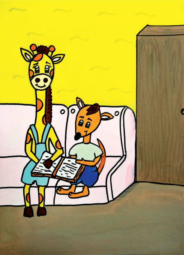 В доме жил один жираф,У него был книжный шкаф.Часто рано поутруЗвал он в гости кенгуру,И они вдвоем читалиИ, конечно же, мечтали!!!А о чем? Вам рассказать?Может лучше угадать?Так о чем мечтают дети?Чтобы мирно жить на свете,Чтобы солнышко светило,Никому не скучно было,Чтобы новую игрушкуПоложил ты под подушку,Чтобы нравилась панамаИ всегда хвалила мама!