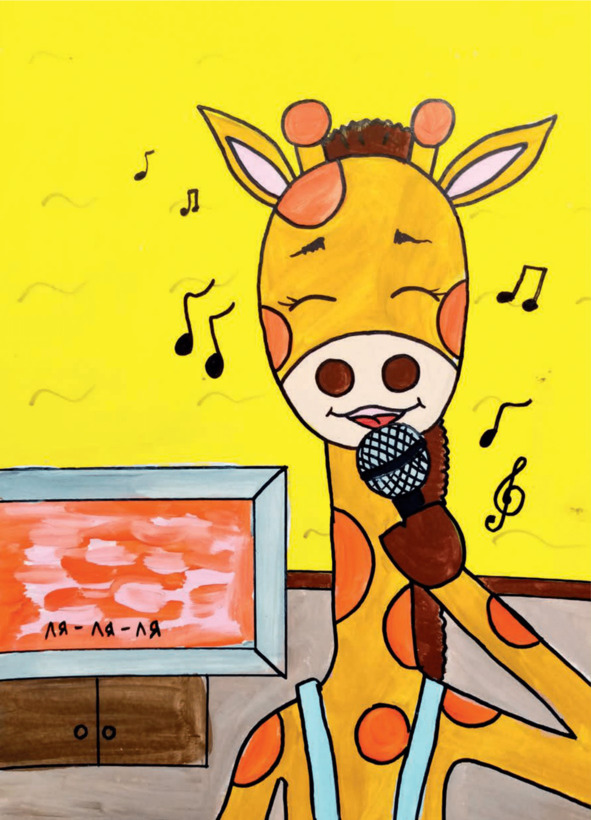 В караоке пел наш друг,И не выпускал из рукМикрофон почти весь день,Хоть просил попеть олень,Но жирафик в этот разИ оленю дал отказ…Песню заводил он снова,Иногда мычал без слова,Иногда рычал как лев,Иногда шептал припев…Иногда хрустел морковкойВ перерывах – так неловко!!А потом он снова пел —Видно очень уж хотел!!!Наконец остановился:«Жаль не соловьем родился!»