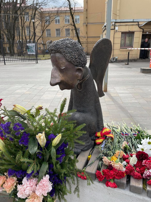 3 марта на день раньше, словно спеша (его открытие должно было состояться 4 марта), в тайне от инициаторов Стены памяти, от родственников умерших, открыли памятник медикам на набережной реки Карповки напротив Первого медицинского университета Санкт-Петербурга. Скульптура называется «Печальный ангел». Ее создатель, известный питерский художник Роман Шустров, умер в мае 2020 года от ковидной инфекции.