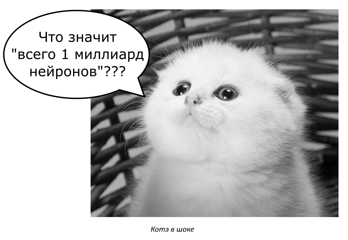 Число нейронов в мозге человека составляет, по разным оценкам, от 80 до 100 миллиардов. А в мозге котика – до 1 миллиарда нейронов.