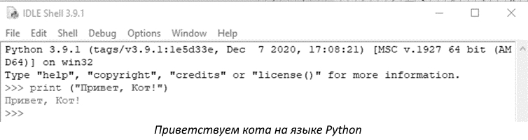 1) переходим по ссылке [1] в конце книги и скачиваем последнюю версию Python (на момент написания книги – 3.9.4) вместе со средой разработки IDLE. Python (по-русски читается “Пайтон”) – язык программирования, ставший в последнее время очень популярным, одна из причин – легкость установки и использования, мы с тобой убедимся в этом. К сожалению, за удобства приходится платить – программы на Python работают медленнее аналогичных программ, к примеру, на языке С++, иногда – намного медленнее, раз в 10 и даже больше. Для нас с тобой это пока не проблема.