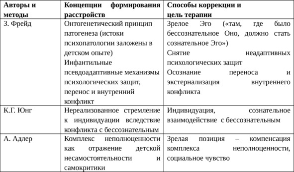 Таблица3. Представления классических методов психотерапии об этиологии и патогенезе психических и психосоматических расстройств, способах коррекции и целях терапевтического процесса