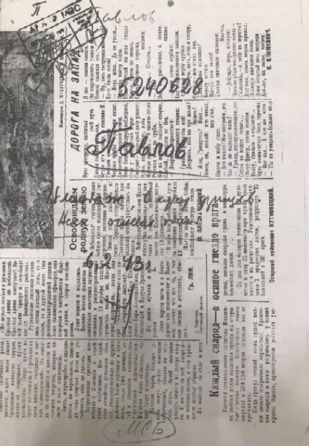 Личное дело по приему красноармейца Ивана Павлова в партию в феврале 1943 г.
