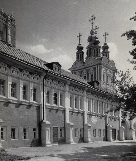 – Размещалась тогда наша школа в двух помещениях в Новодевичьем монастыре. В Лопухинском корпусе в верхнем этаже мы занимали четыре комнаты: первая – 35-40 квадратных метров, и вторая, примерно равная ей – там находились первый и второй курсы Богословского института; рядом небольшая комната – учительская, и четвертая – квартира ректора. Богословско–пастырские курсы размещались в нижнем этаже, там же была и кухня. Питание для тех, кто жил в общежитии, было двухразовым: утром – завтрак, потом, в зависимости от времени окончания занятий – обед. Студентам полагалась рабочая карточка, на которую и получали это питание. Завтракали и обедали за теми же столами, за которыми проходили уроки – это обязывало быть аккуратными в отношении своего «рабочего места». Общежитие находилось в Успенском храме, в кладовых, напротив главного входа в трапезную. Там была большая комната, 84 квадратных метра, из нее была отделена фанерной перегородкой небольшая комнатка для воспитателя, а остальное место занимали койки студентов.