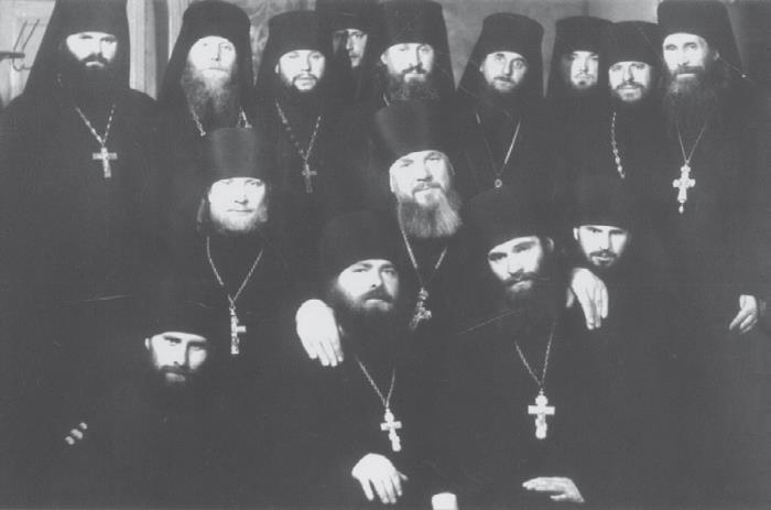 Архимандрит Кирилл (крайний справа) с братией Лавры
