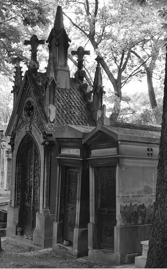 Описывая интересные и необычные памятники садово-парковых парижских кладбищ, изначально находившихся вне города, особое внимание я уделяю художественным характеристикам кладбищенских жанров: мавзолеев в виде усыпальниц, плакальщиц, портретных надгробий и проч., – а также избранным оригинальным памятникам. Выделенный мною жанр реалистической эффигии (лежащего на могиле трупа в натуральную величину) изображает состояние тела между жизнью и смертью – в отличие от старых транзи, изображающих разлагающийся труп (репрезентация жуткой стороны смерти, которая перестала фигурировать в конце XVII века). Некоторые памятники, созданные в этом жанре, изображают человека на том месте, где он был убит или умер: известные мужские эффигии, появившиеся во второй половине XIX века, обычно принадлежат революционерам, а также убитым на дуэли или в катастрофе. Важно и то, что они полностью опровергают вертикальность – один из основных параметров кладбищенского пространства.