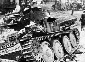 Подбитый немецкий танк 38(t). Такие машины составляли основу танкового парка 3-й ТГр.