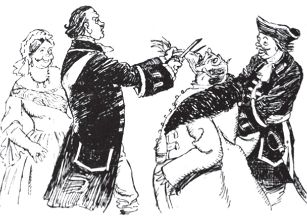Спектакль начался. Вначале все шло прекрасно. Лев важно прошелся по скале. Охотник выстрелил, стрела полетела… И вот здесь вышла заминка. Пораженный стрелой лев явно испугался высоты и в нерешительности топтался на краю скалы, виновато поглядывая на балетмейстера, в ужасе застывшего в кулисах.
