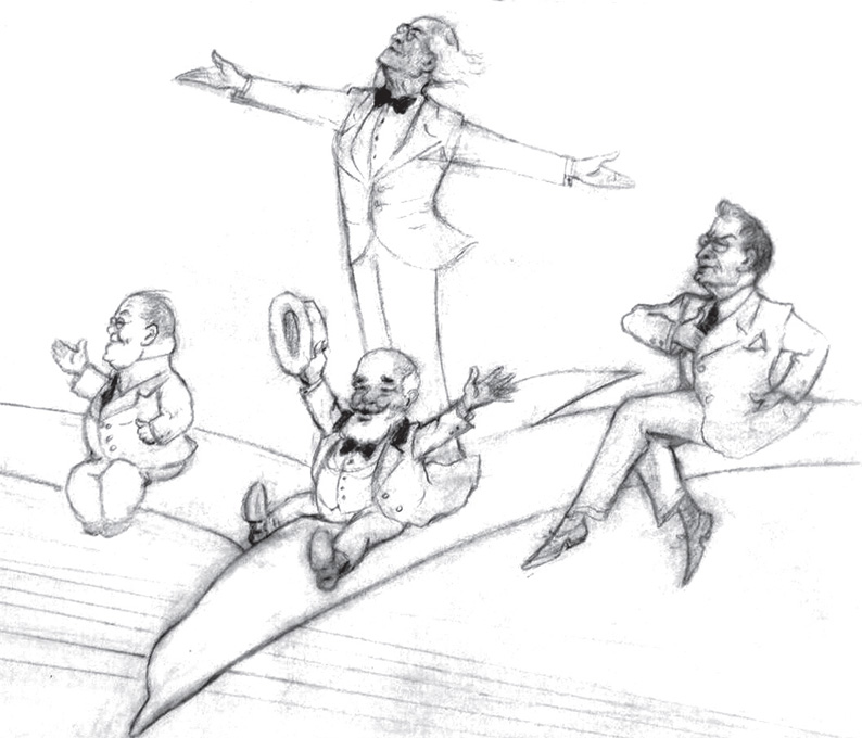 Под торжественную музыку и аплодисменты справа должен был выйти Станиславский, слева – Немирович. Сойдясь в центре, они пожмут друг другу руки на вечный мир и дружбу. Крики «ура», цветы и прочее… Они оба сценарий приняли: им самим давно надоела дурацкая ситуация.