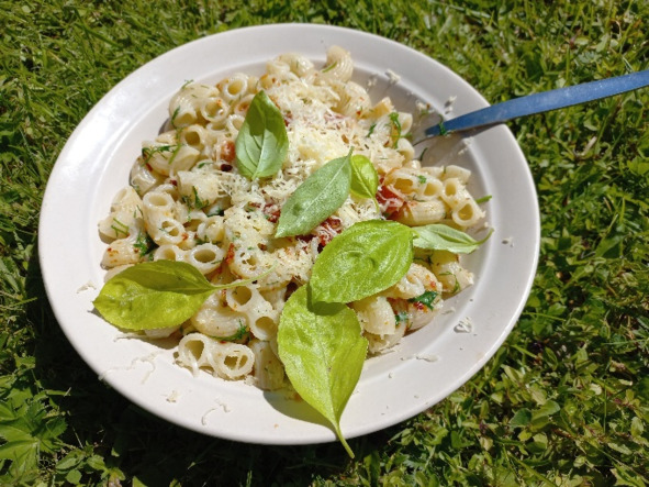 Приятная сытость от картошки с курицей в мангале на костре… спасибо маме…