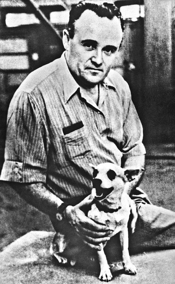 Сергей Королёв с собакой Стрелкой, которой предстоит полет в космос