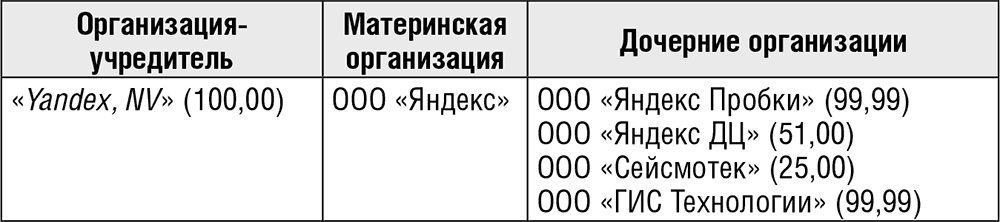 Таблица 15. Структура собственности «Яндекс» (ЕГРЮЛ, 2012 г.)