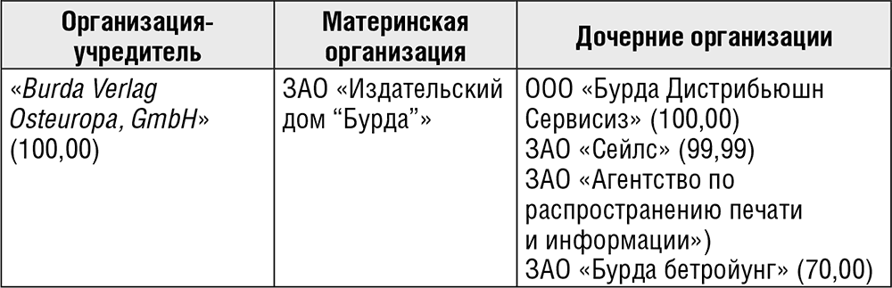 Таблица 17. Структура собственности ИД «Burda» (ЕГРЮЛ, 2012 г.)