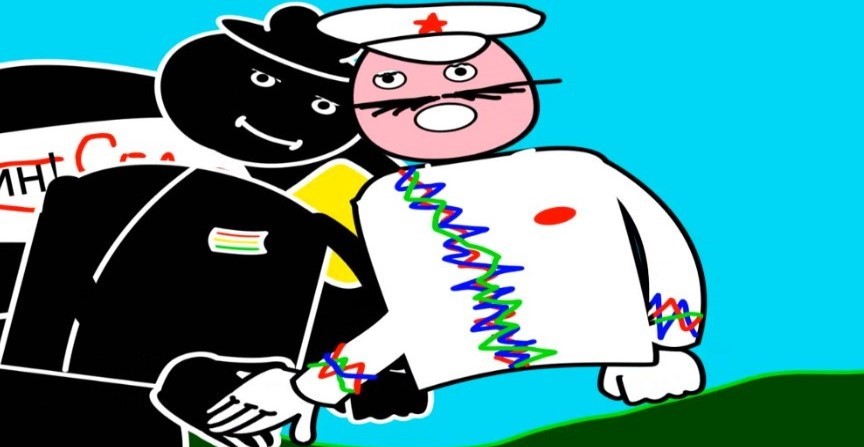 Стали они регулировать движение, чтобы порядок был на дорогах, хотя там народу полтора человека в час. Костюмы себе пошили чёрные красивые, выбили себе право на дорогах указывать всем куда идти. Стоят на перекрёстках и говорят: «Иди ты тут, а ты иди тут». Ну их и стали называть «Идитут». А поскольку итоги своей работы они обсуждали в государственной Дыме, их так и стали называть Идитуты государственной Дымы.