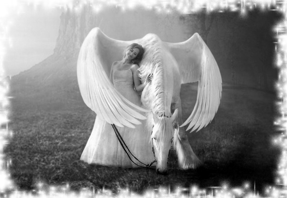 И как только с Марьяной произошли всё эти изменения, из её тела, как из рассыпавшейся клетки, на волю вылетел белый крылатый конь Пегас. Конь сказал Марьяне: «Я благодарю тебя, что ты освободила меня из заточения и теперь я буду служить тебе, а на крыльях вдохновения я быстро домчу тебя домой».