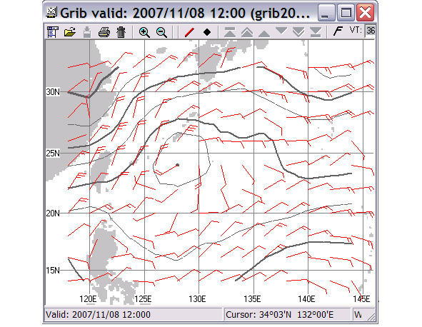 Подходили к Нахе, погода ухудшилась. Подуло, поднялась волна. Пошел дождь, видимость резко упала. Изначально Андрей планировал стоять в самой Нахе, но японец в Нагасаки его отговорил. Сказал, что лучше стоять чуть не доходя, в другой марине. И на прощание, вместо точных GPS-координат всучил распечатанный на принтере спутниковый снимок этих мест. Нарисовал от руки пару стрелок-вот и лоция. А на подходе к этим местам листочек у нас необъяснимым образом промок и изображение на нем растеклось. Хорошо было видно только стрелки в сторону берега.