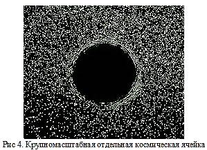 1) крупномасштабные ячеистые структуры, содержащие зародыши галактик и запас первородной энергии;