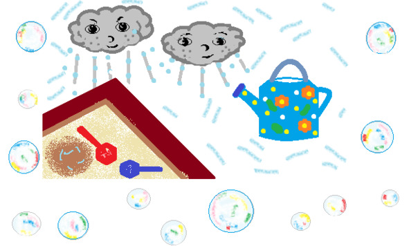 С другом над песочной кучейМы кружились, словно тучи.Колька-тучка дело знал:Дождь из лужи добывал.Поливал дождём песок,Я грозой шумел – как мог!И в песке ещё потомЯмку выкопал совком.Дождик лился, лился, лился —И бассейн получился!Только вот одна беда —В нём не держится вода!Сколько Колька ни старался,А бассейн пустой остался.
