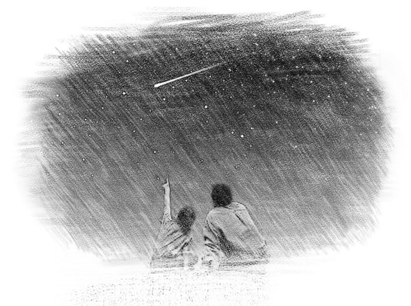 Смотрели звёзды с высоты,Мерцая ярким светом,Маня, притягивая взгляд,Горя зимой и летом.В бездонном небе над землёй,В непостижимой чёрной дали,Пройдя сквозь миллиарды лет,Они светить не перестали.Лишь иногда, сорвавшись вниз,Блеснув стремительно и ярко,Черкнёт по небу желтый миг,Чтоб загадали мы желанье.